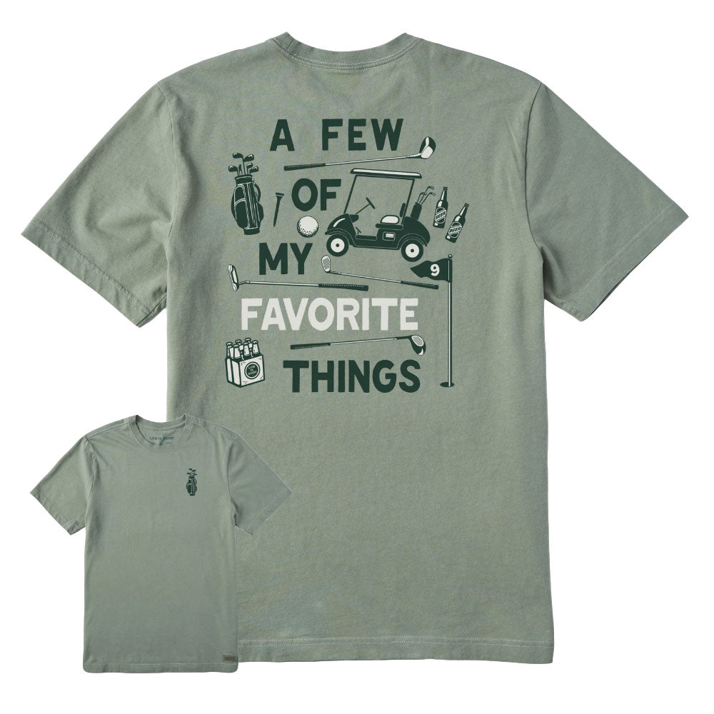 The Life Is Good A Few of My Favorite Golf Things Men's T-Shirt is a delightful nod to the joys of the game. Crafted from 100% USA-grown cotton, this tee offers a soft, broken-in feel right from the start. Its classic fit and durable construction ensure comfort and longevity, whether you're on the course or relaxing afterward. With its playful design and positive message, it's a great way to showcase your love for golf and good vibes.