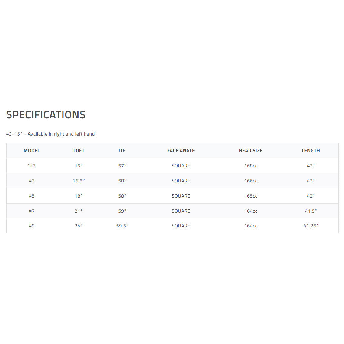 | Club/loft | 3hl, 3, 5, 7 |
