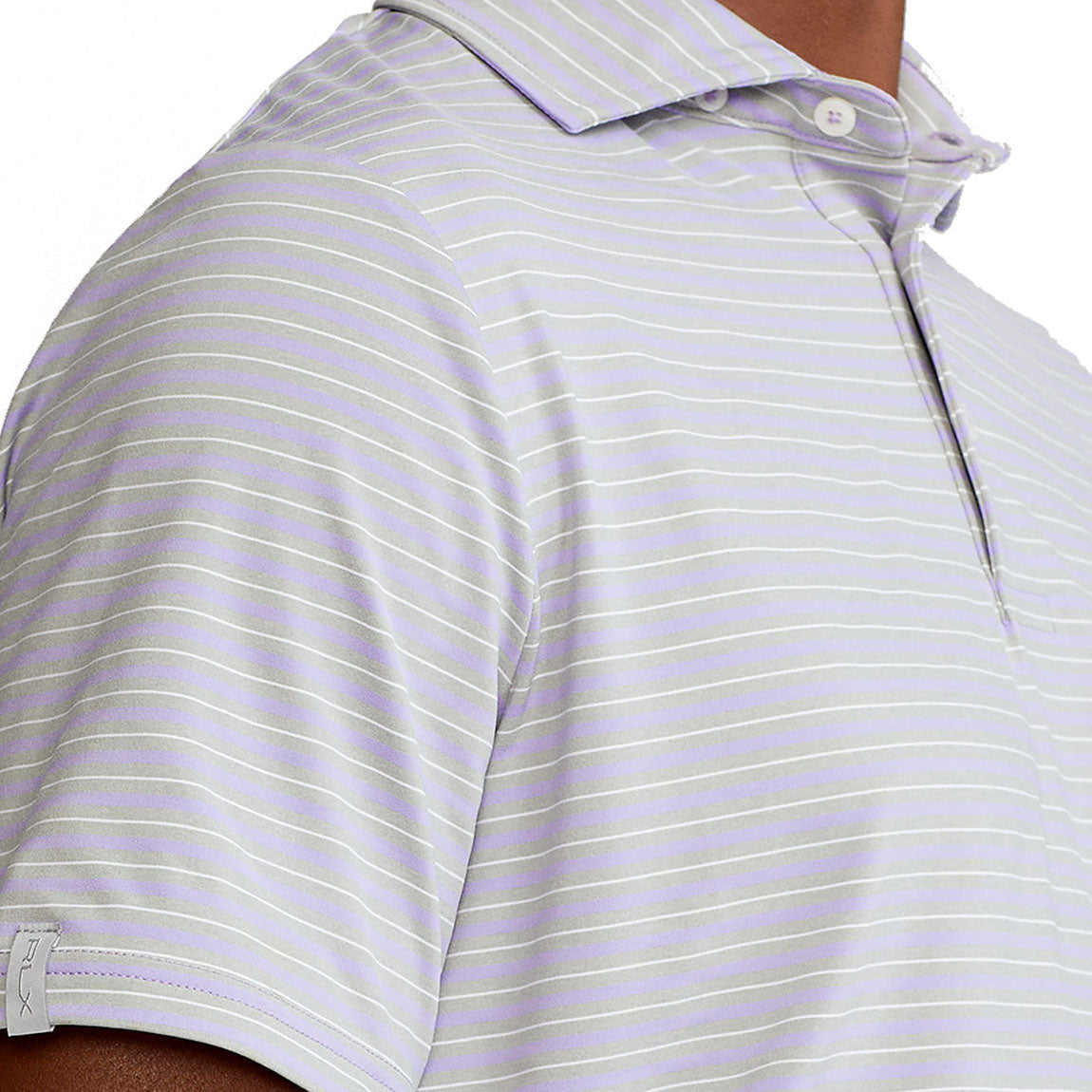 RLX Ralph Lauren Featherweight Tri-Color Stripe Sky Lavender Mens Golf Polo