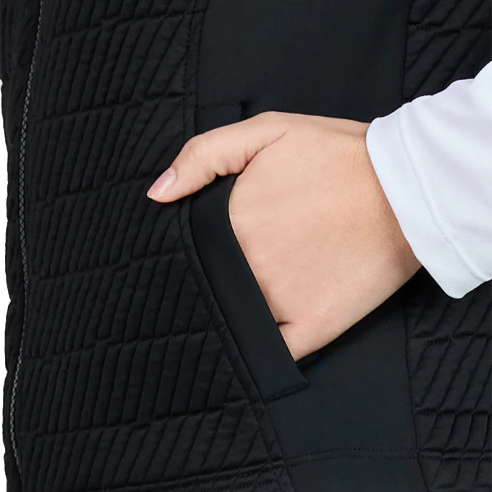The Sofibella Staples Womens Golf Vest is designed for golfers who want lightweight warmth and unrestricted mobility through every swing. Its sleeveless silhouette allows full range of motion while providing core warmth on cool course mornings or breezy conditions. Constructed from stretch performance fabric the vest moves with the body and wicks moisture to help keep players comfortable throughout their round. Clean Staples inspired styling makes this vest easy to layer over performance tops for a polished and functional golf outfit.