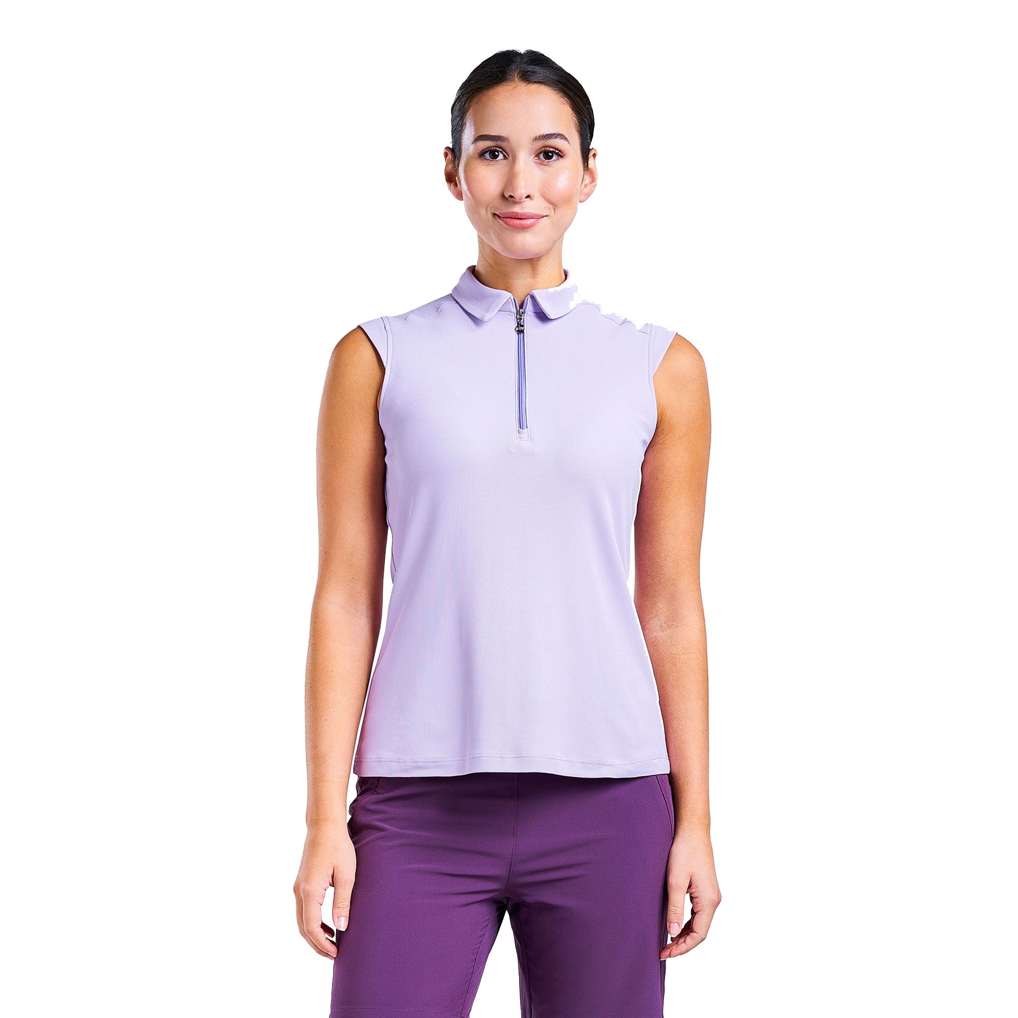 Discover the perfect blend of style and performance with the NVO Nikki II Women's Sleeveless Golf Polo. This top is specifically tailored for the active golfer who values both elegance and practicality. The sleeveless design provides freedom of movement and comfort, making it ideal for warmer days on the golf course. Crafted with a breathable, moisture-wicking fabric, this polo keeps you cool and dry as you play, ensuring maximum focus and performance. The Nikki II features a sleek, figure-flattering fit and a classic collar with a quarter-zip placket that adds a traditional touch to its modern look. Whether you're aiming to improve your game or simply enjoy a day out, this polo is designed to keep you looking and feeling great from the first tee to the final green.